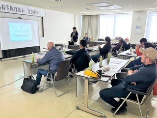 講習会では、普及センターの田村専門普及指導員、石垣普及職員から令和5年のばれいしょ生産の振り返りと今後の気象変動に対応した安定確収技術、新品種の試験結果などの説明を行いました。